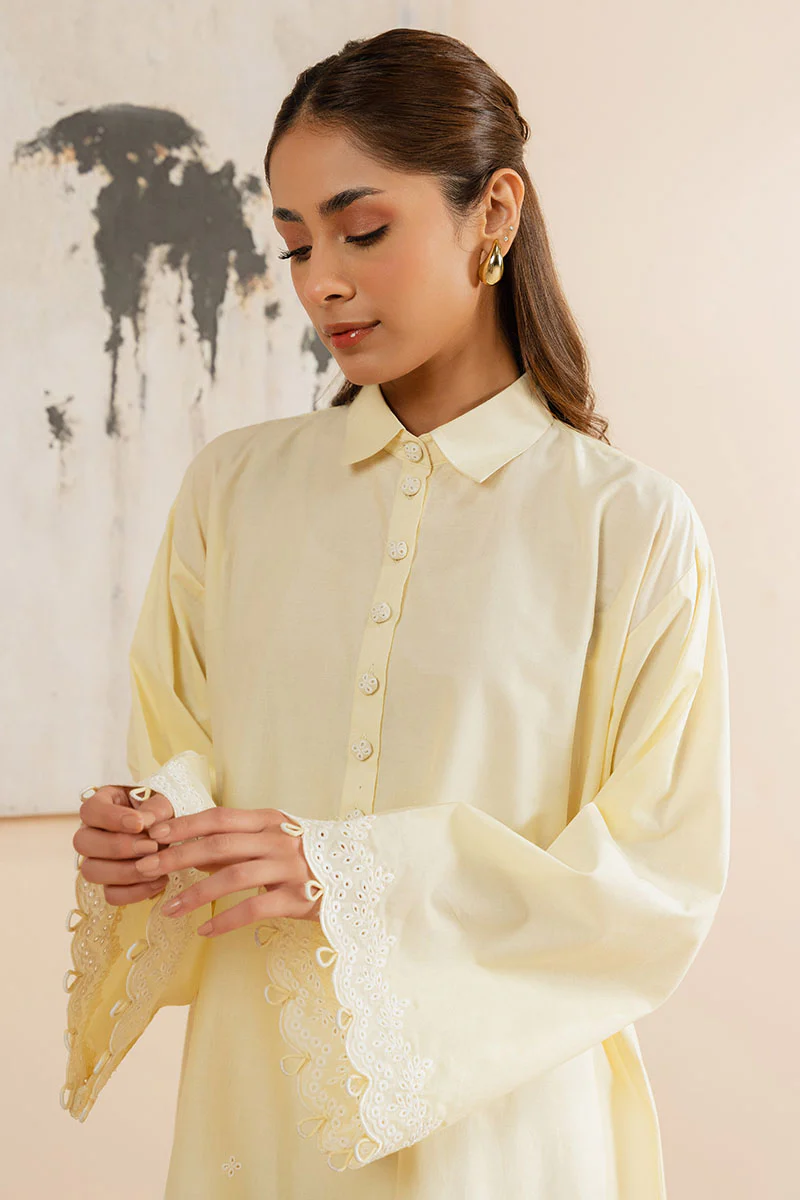 The AURORA BLOOM-2 PC is a unique and stylish ensemble. The box-fit shirt, made from high-quality lawn fabric, features intricate embroidery and taseling details on the hem and sleeves. The trousers, also made from cambric fabric, boast an eye-catching embroidery design on the edge of the box pants. Elevate your wardrobe with this fashionable set.
