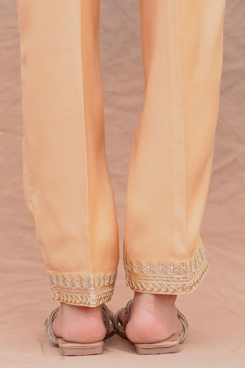 STRAIGHT FITTED RAW SILK SEQUIN EMBROIDERED PANTS