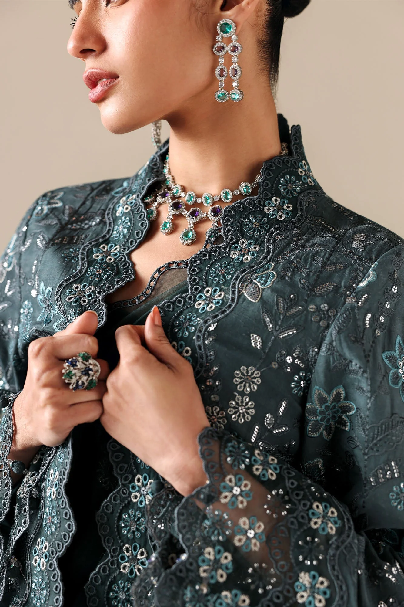 DARK SEA-3PC SILK EMBROIDERED SUIT