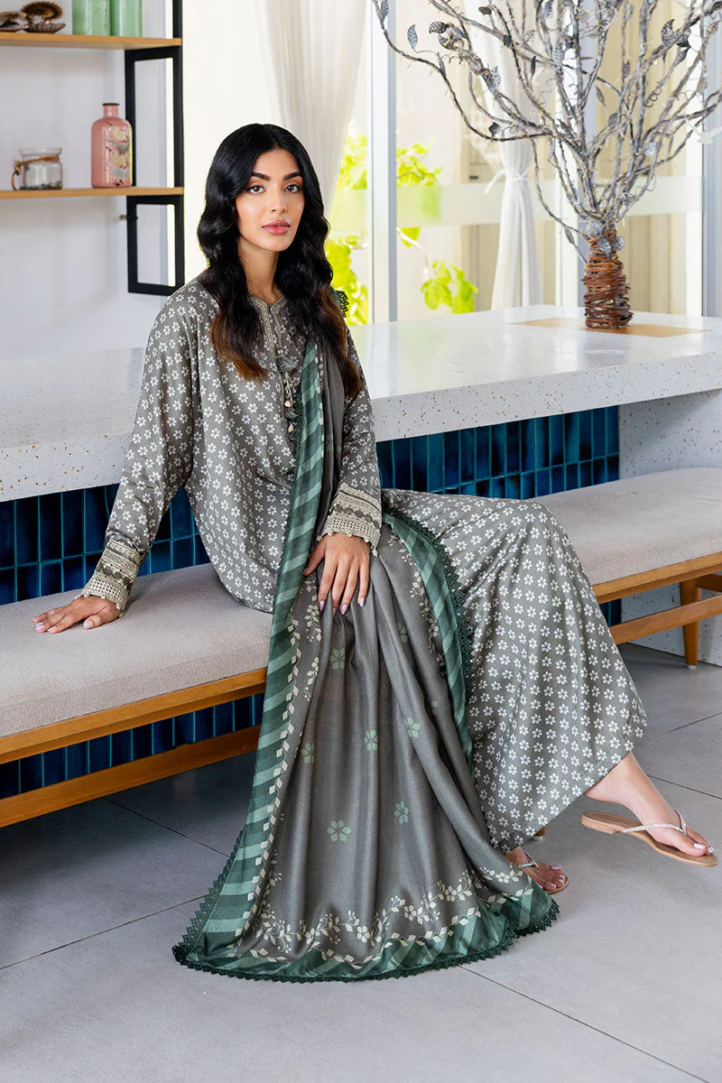 - This Forest Mist 3PC Satin Printed Suit showcases a 100% cotton satin shirt featuring a delicately embroidered neckline, complemented by 60" embroidered patti on the sleeves and 40" on the hem for refined detailing. The accompanying cambric dyed trouser offers comfortable wear, while the viscose net printed dupatta adds a lightweight and elegant finish to the ensemble. Perfectly balanced in texture and design, this suit delivers both style and comfort.