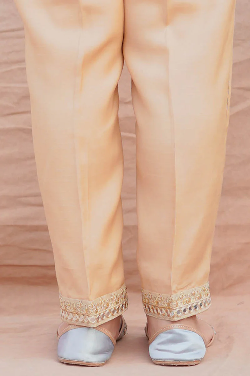 SEQUIN EMBROIDERED RAW SILK STRAIGHT FITTED PANTS